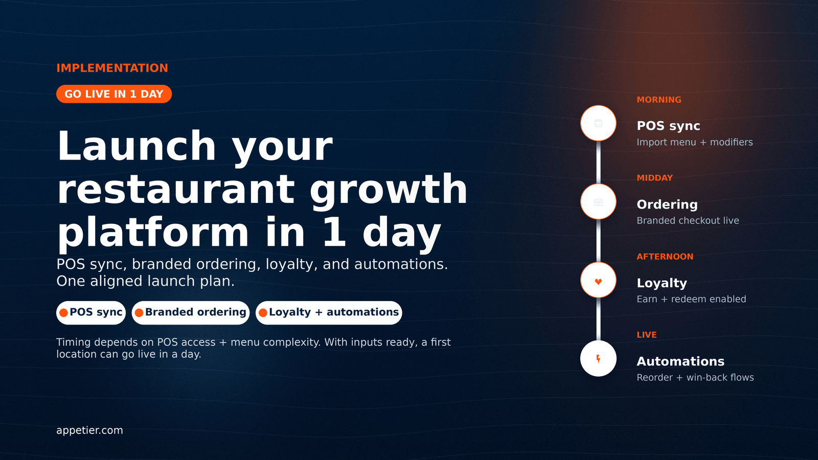 - Clean POS credentials with access to menus, modifiers, taxes, and hours.